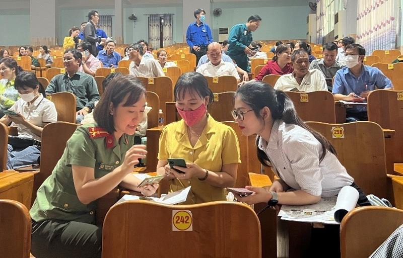Tổ giúp việc Đề án 06 H.Nhơn Trạch hướng dẫn người dân cài đặt ứng dụng VNEID