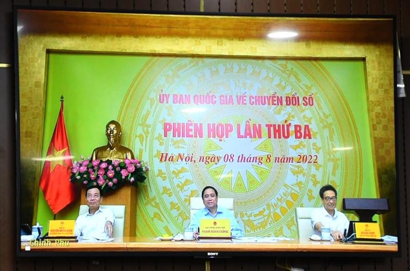 TTĐT - Sáng ngày 8-8, Thủ tướng Chính phủ Phạm Minh Chính, Chủ tịch Ủy ban Quốc gia về chuyển đổi số (Ủy ban) đã chủ trì phiên họp thứ ba trực tuyến tới trụ sở các bộ, ngành, cơ quan thuộc Chính phủ và UBND các tỉnh, thành phố trực thuộc Trung ương.