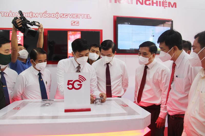 Lãnh đạo tỉnh tham quan khu vực trải nghiệm thực tế sóng 5G tại Viettel Đồng Nai.