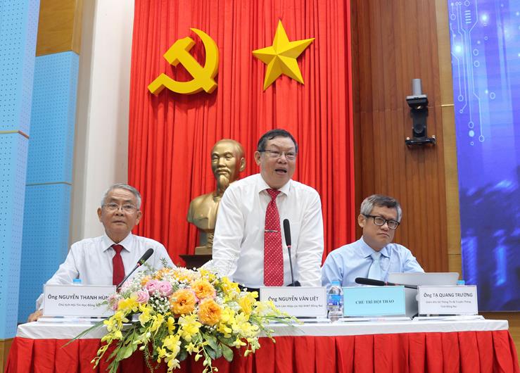 Lãnh đạo Sở TT-TT, Liên hiệp các hội khoa học và kỹ thuật tỉnh và Hội Tin học Đồng Nai chủ trì hội thảo.