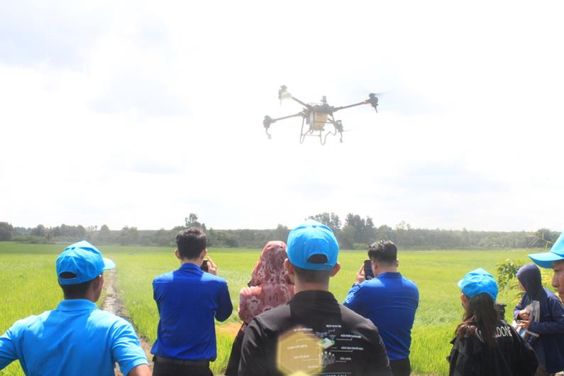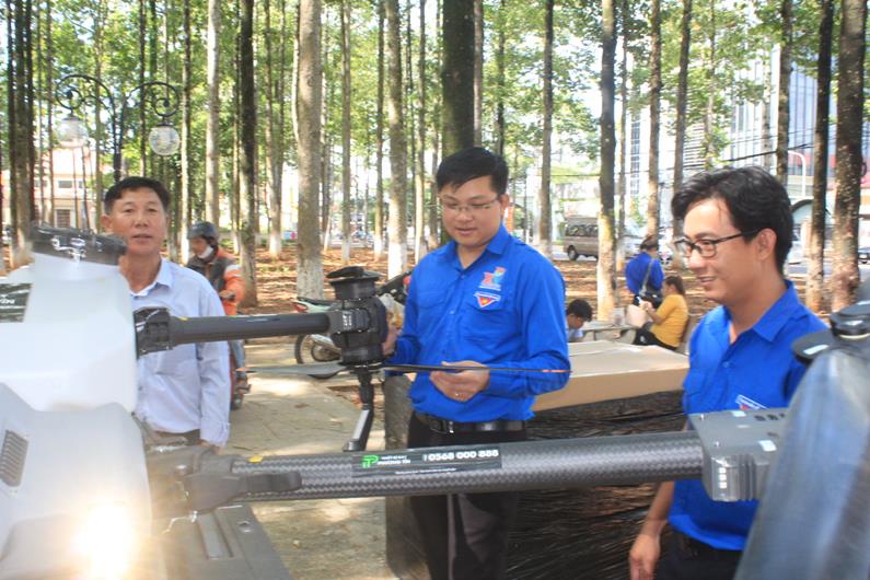 Cán bộ Đoàn tìm hiểu về công nghệ của máy bay ứng dụng hỗ trợ nông nghiệp