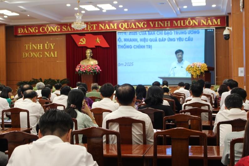 (CTT - Đồng Nai) - Sáng 23-6, Ban Chỉ đạo Trung ương về phát triển khoa học, công nghệ, đổi mới sáng tạo và chuyển đổi số tổ chức Hội nghị quán triệt triển khai Kế hoạch số 02-KH/BCĐTW ngày 19-6-2025 của Ban Chỉ đạo Trung ương trực tiếp kết hợp trực tuyến về thúc đẩy chuyển đổi số liên thông, đồng bộ, nhanh, hiệu quả đáp ứng yêu cầu sắp xếp tổ chức bộ máy của hệ thống chính trị.