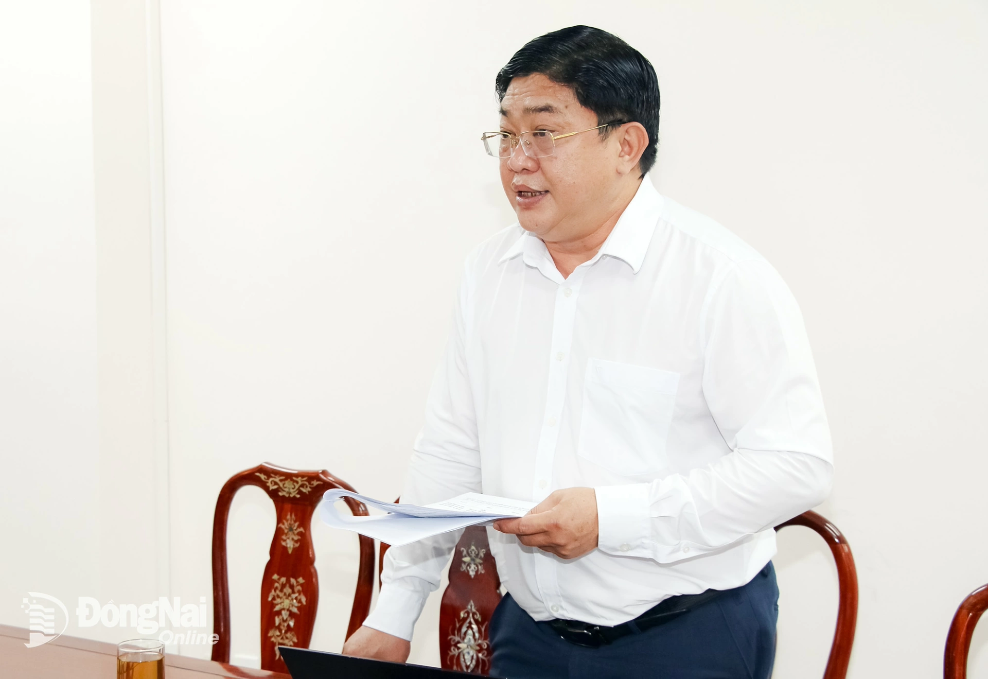 Ủy viên Ban Thường vụ Tỉnh ủy, Phó Chủ tịch UBND tỉnh Đồng Nai Lê Trường Sơn chủ trì buổi làm việc. Ảnh: Hải Quân |