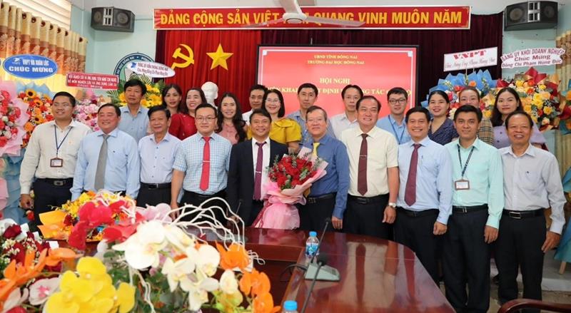 Tân Phó Hiệu trưởng Trường Đại học Đồng Nai Phạm Hùng Đức chụp hình lưu niệm cùng lãnh đạo Trường Đại học Đồng Nai trong buổi lễ công bố quyết định.