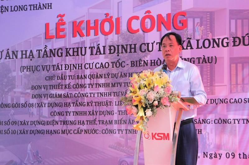 Phát biểu tại lễ khởi công, Phó Chủ tịch UBND tỉnh Võ Tấn Đức nhấn mạnh, Khu tái định cư tại xã Long Đức được quy hoạch xây dựng với hệ thống hạ tầng kỹ thuật hoàn chỉnh và đồng bộ, tuân thủ quy hoạch chung được duyệt và gắn kết với hạ tầng chung trong khu vực. Khi hoàn thành xây dựng, Khu tái định cư tại xã Long Đức sẽ tạo ra một khu ở mới khang trang hơn, tốt đẹp hơn, tạo điều kiện tốt cho sự phát triển đời sống của người dân, cho sự phát triển kinh tế, xã hội của khu vực nói chung và H.Long Thành nói riêng. Phó Chủ tịch UBND tỉnh Võ Tấn Đức cũng yêu cầu các đơn vị liên quan phải triển khai thực hiện dự án đảm bảo tiến độ và chất lượng.
