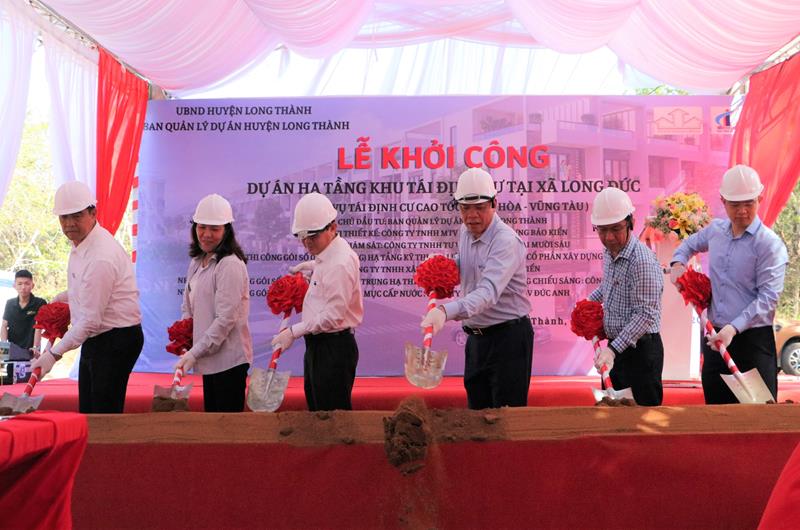 Các đại biểu thực hiện nghi thức khởi công xây dựng khu tái định củ tại xã Long Đức