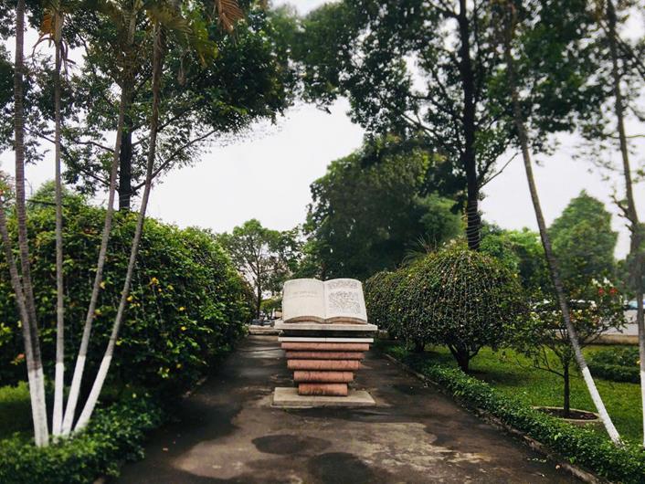 Cuốn vở bằng chất liệu đá tại di tích khắc chữ là minh chứng cho tội ác, thủ đoạn của thực dân Pháp đối với nhân dân Việt Nam