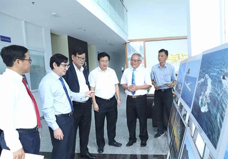 Các đại biểu tham quan triển lãm ảnh Trường Sa - Nhà giàn thân yêu tại Báo Đồng Nai