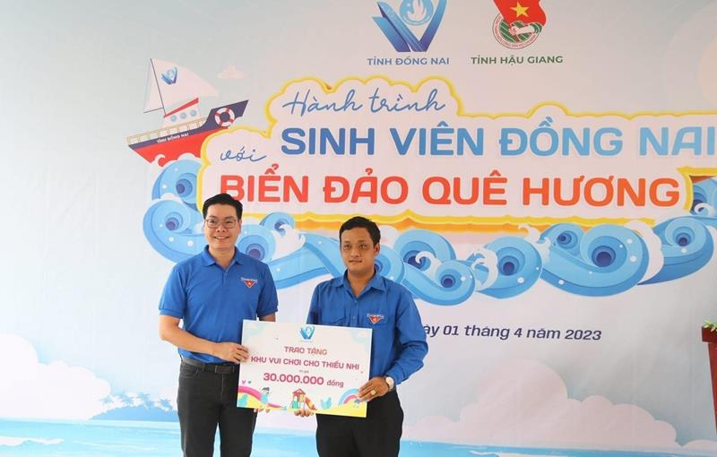 Chủ tịch Hội Sinh viên tỉnh trao kinh phí thực hiện khu vui chơi thiếu nhi trong hành trình sinh viên Đồng Nai với biển, đảo quê hương
