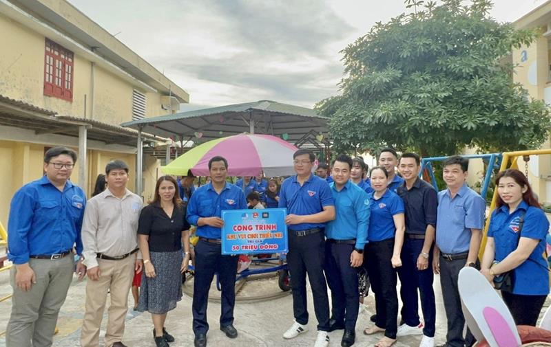 Đại diện Tỉnh đoàn, Huyện đoàn Vĩnh Cửu và Công ty TNHH Changshin Việt Nam trao công trình Khu vui chơi thiếu nhi tại huyện đảo Lý Sơn