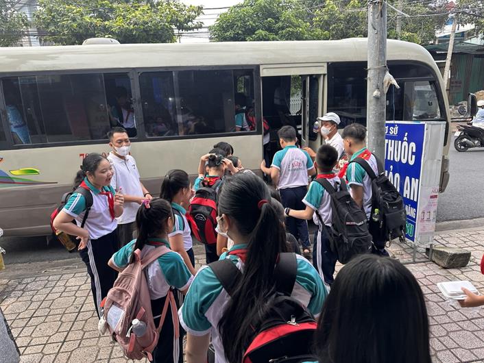 Nhiều học sinh khối 4-5 của Trường Tiểu học Phan Đình Phùng phải thức dậy từ sớm để cho kịp chuyến xe đưa rước qua Trường Tiểu học Bình Đa học nhờ