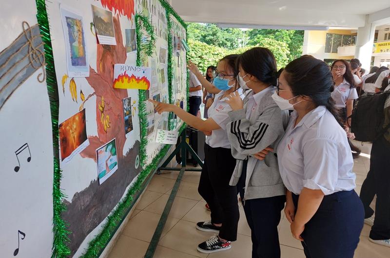 Học sinh Trường THPT Chuyên Lương Thế Vinh tham quan triển lãm tại lễ tổng kết dự án Tiếng nói của rừng
