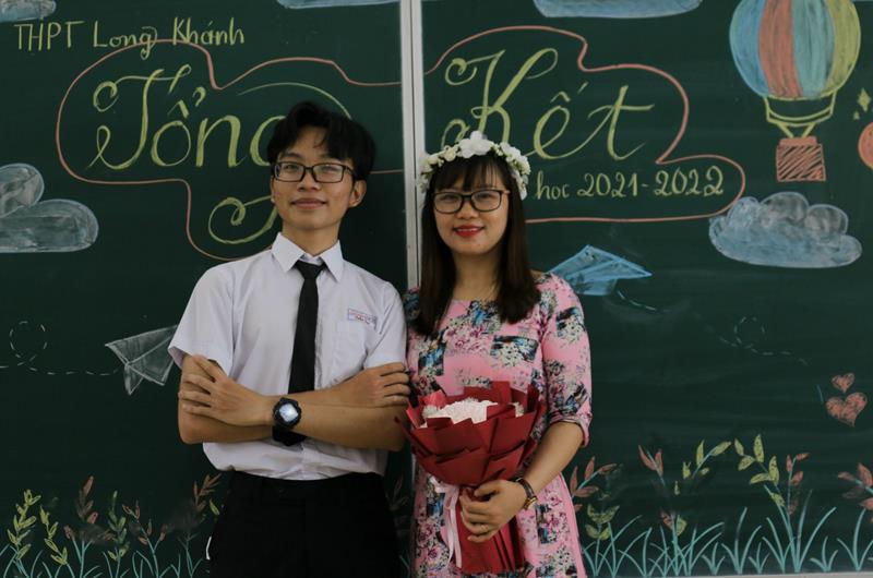 Phạm Tuấn Đạt chụp hình lưu niệm cùng Cô giáo chủ nhiệm lớp 12