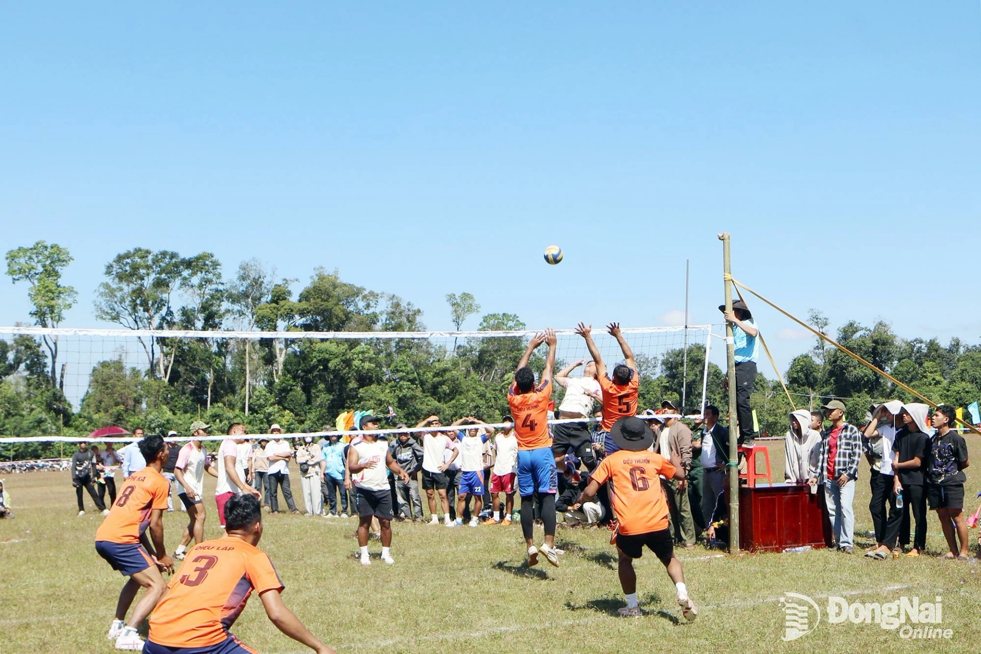 Người dân xã Thọ Sơn thi đấu bóng chuyền tại Ngày hội Đại đoàn kết toàn dân tộc. Ảnh: Văn Truyên
