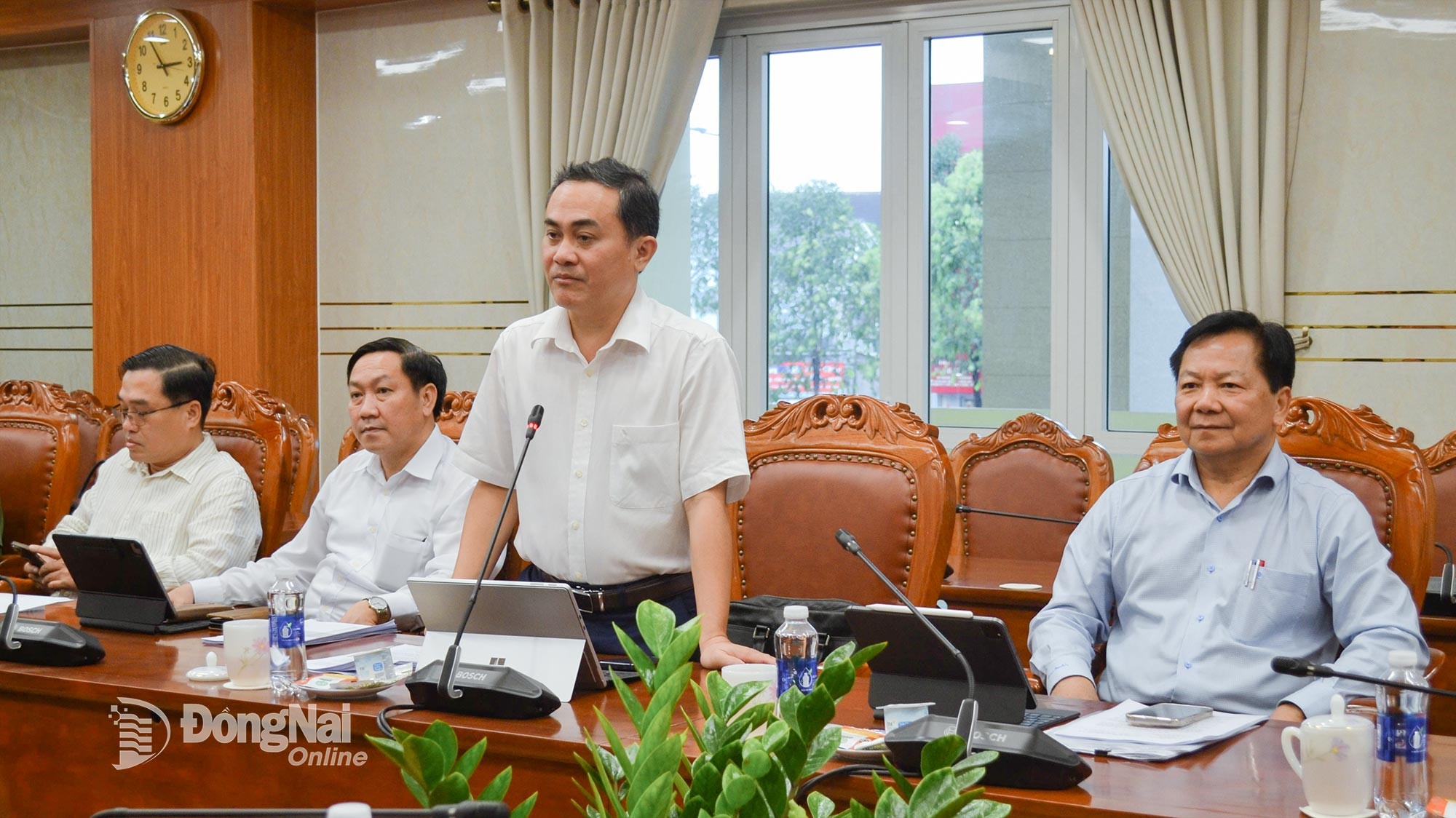 Ủy viên Ban Thường vụ Tỉnh ủy, Phó Chủ tịch UBND tỉnh Đồng Nai Lê Trường Sơn phát biểu tại cuộc họp. Ảnh: Phương Hằng