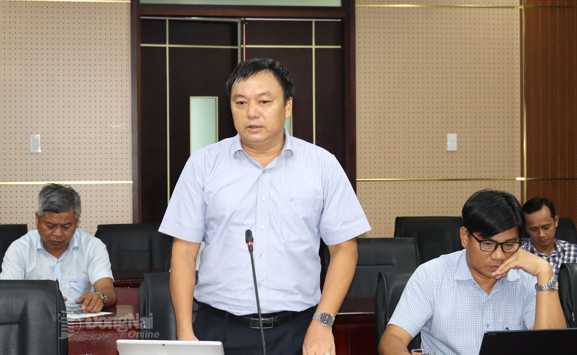 | Tỉnh ủy viên, Phó Chủ tịch UBND tỉnh Đồng Nai Nguyễn Kim Long phát biểu chỉ đạo tại cuộc họp. Ảnh: Hoàng Lộc |