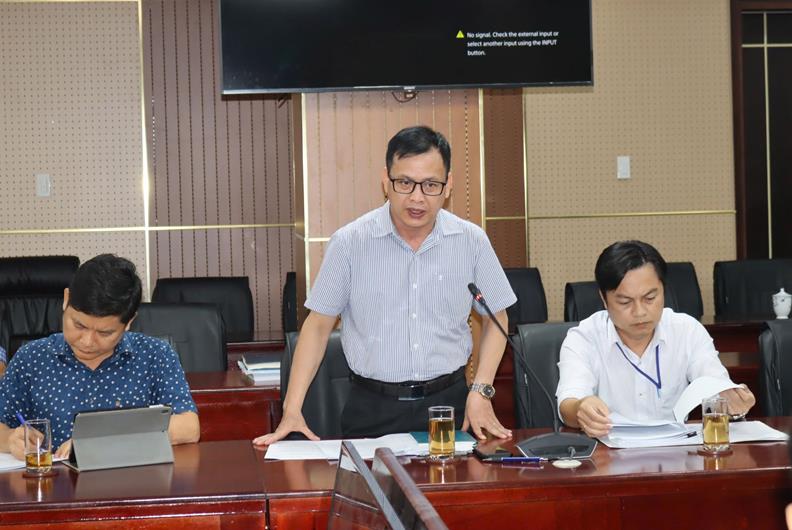 Giám đốc Trung tâm Phát triển quỹ đất tỉnh Mai Phong Phú báo cáo tiến độ di dời các doanh nghiệp