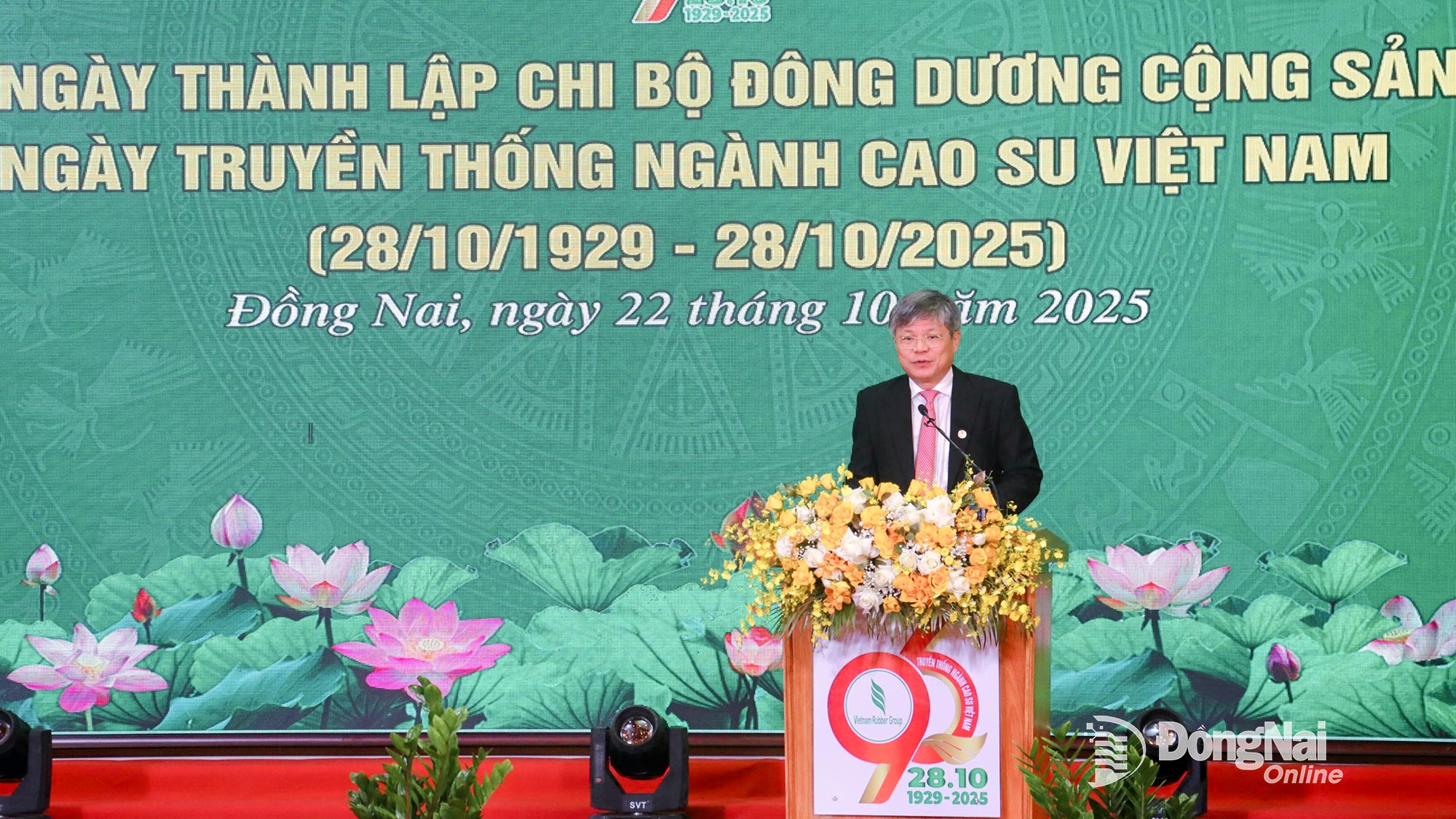 Trong không khí trang trọng của buổi lễ, các đại biểu đã cùng nhau ôn lại truyền thống 96 năm Ngày thành lập Chi bộ Đông Dương Cộng sản Đảng và truyền thống ngành Cao su Việt Nam. Vào đêm 28-10-1929, trên mảnh đất Phú Riềng, Chi bộ Đông Dương Cộng sản Đảng được thành lập, lãnh đạo phong trào đấu tranh của công nhân cao su làm nên Phú Riềng Đỏ anh hùng.