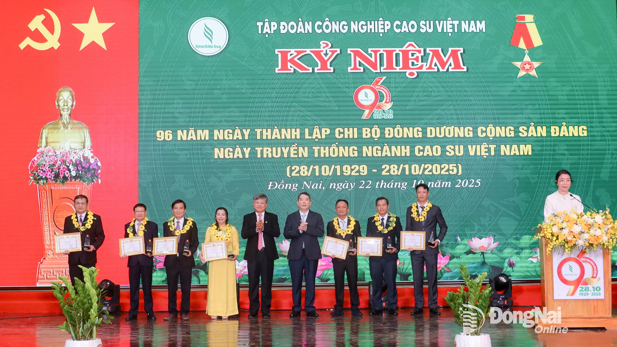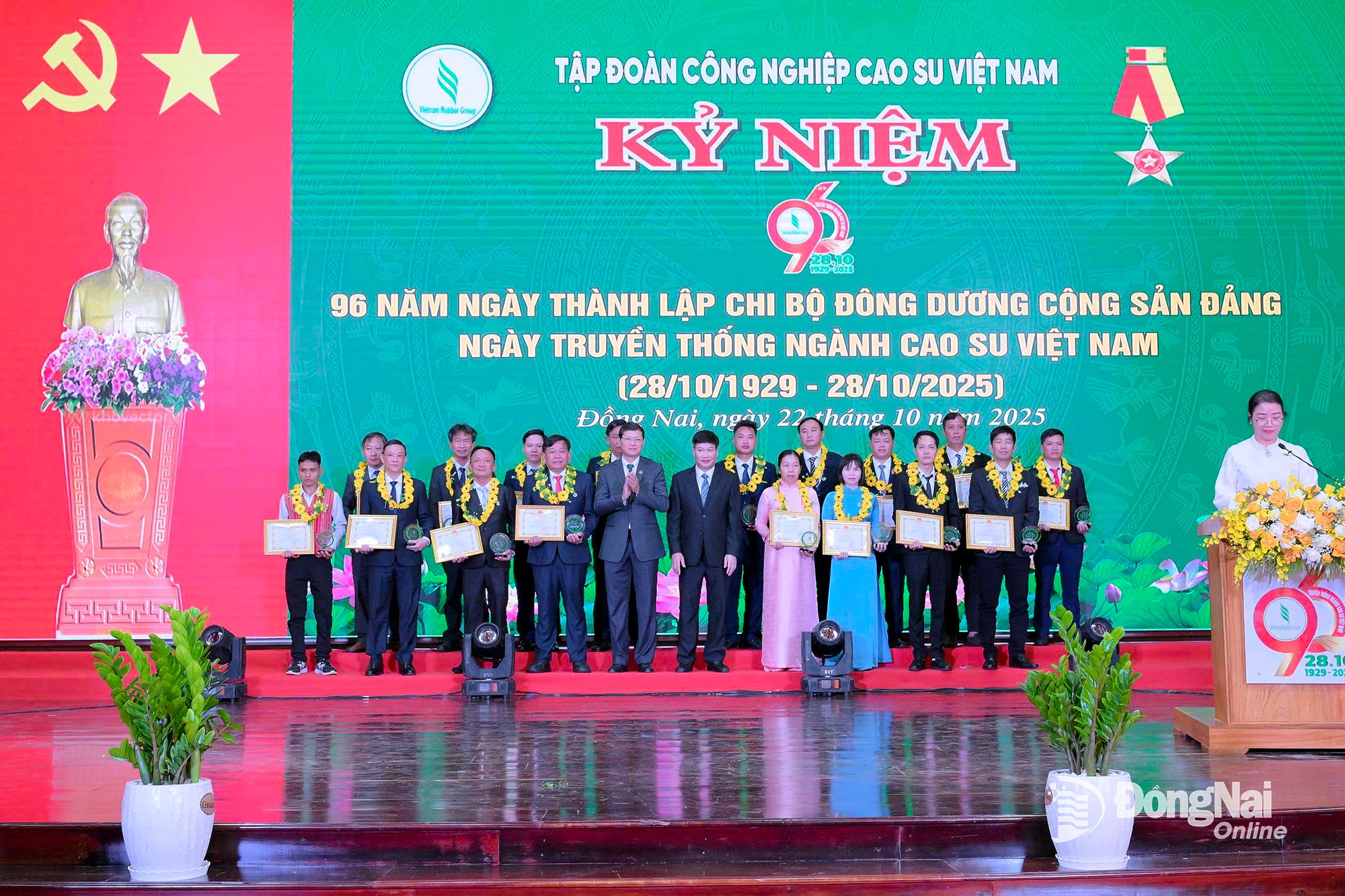 Tại lễ kỷ niệm, 8 cá nhân có thành tích xuất sắc trong công tác, góp phần vào sự nghiệp xây dựng chủ nghĩa xã hội và bảo vệ Tổ quốc đã vinh dự được nhận Huân chương Lao động hạng Ba của Chủ tịch nước; 7 cá nhân được nhận Giải thưởng “Phú Riềng Đỏ” năm 2025; 18 cá nhân nhận Giải thưởng Cao su Việt Nam của VRG.