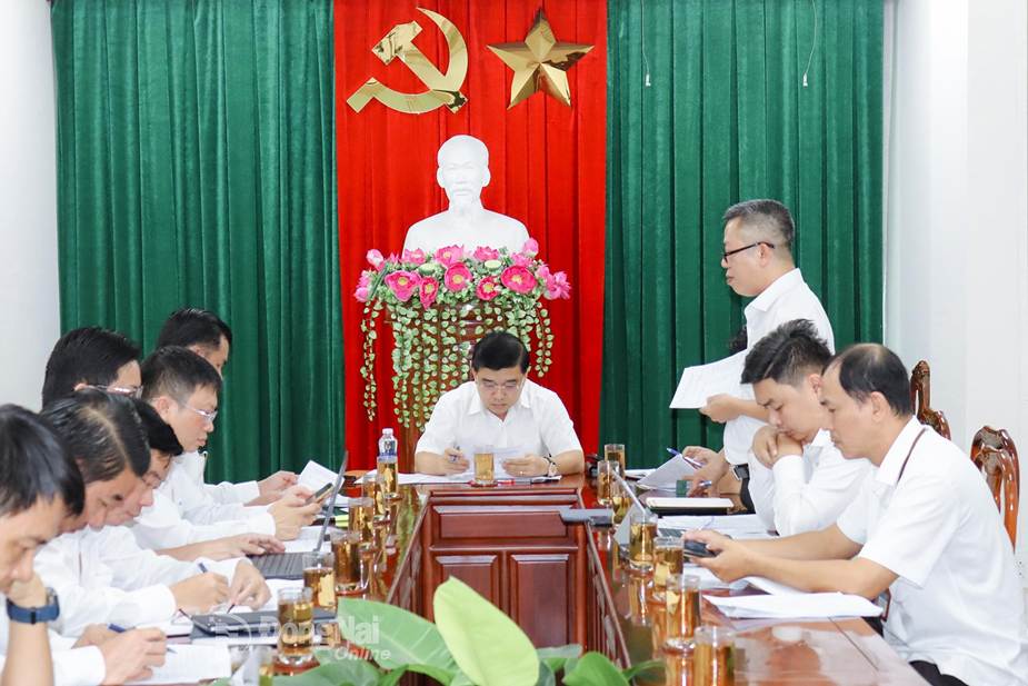 Phó Giám đốc Trung tâm Phát triển quỹ đất tỉnh Đồng Nai Lê Thanh Điền báo cáo tại buổi làm việc. Ảnh: Hoàng Lộc