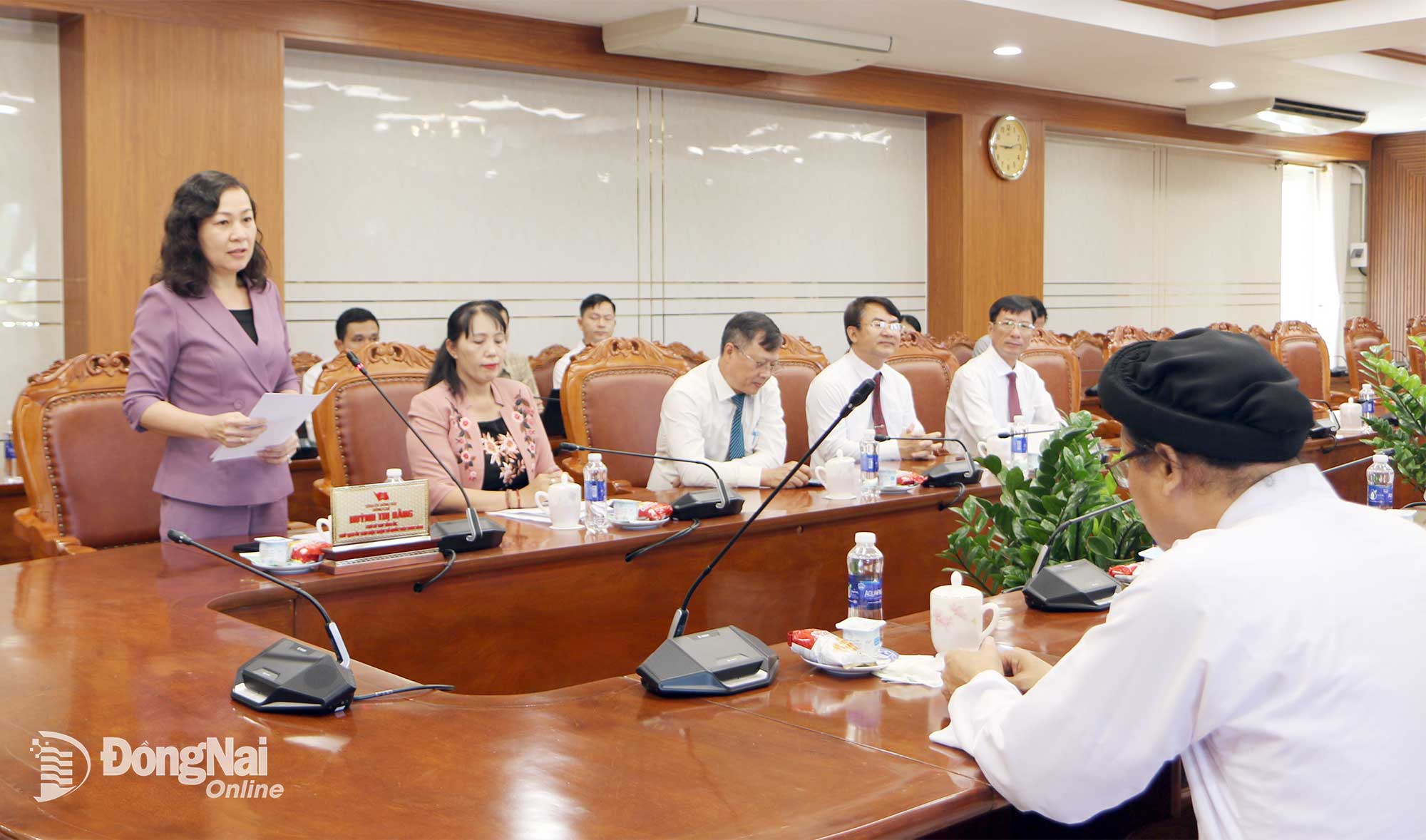 | Phó Bí thư Tỉnh ủy, Chủ tịch Ủy ban MTTQ Việt Nam tỉnh Đồng Nai Huỳnh Thị Hằng phát biểu tại buổi gặp mặt đoàn Hội Thánh Cao Đài Ban Chỉnh đạo. Ảnh: Văn Truyên |