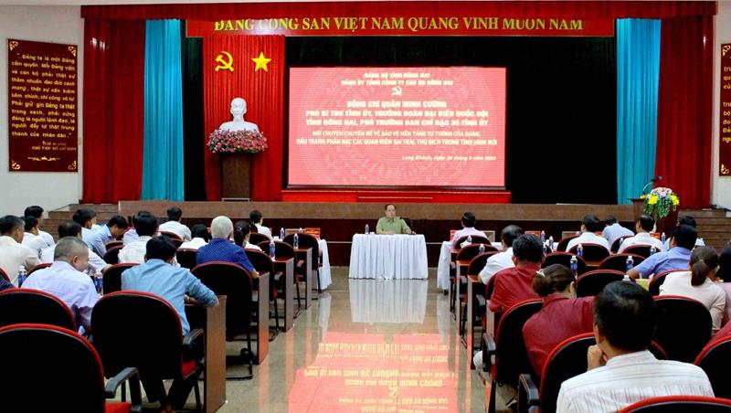 Cán bộ, đảng viên, công nhân viên chức lao động tại Tổng Công ty Cao su Đồng Nai tham dự buổi nói chuyện chuyên đề về bảo vệ nền tảng tư tưởng của Đảng do Đảng bộ Tổng công ty tổ chức.