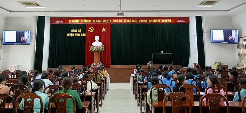 Cán bộ, hội viên phụ nữ H.Vĩnh Cửu tham gia học tập tại điểm cầu H.Vĩnh Cửu