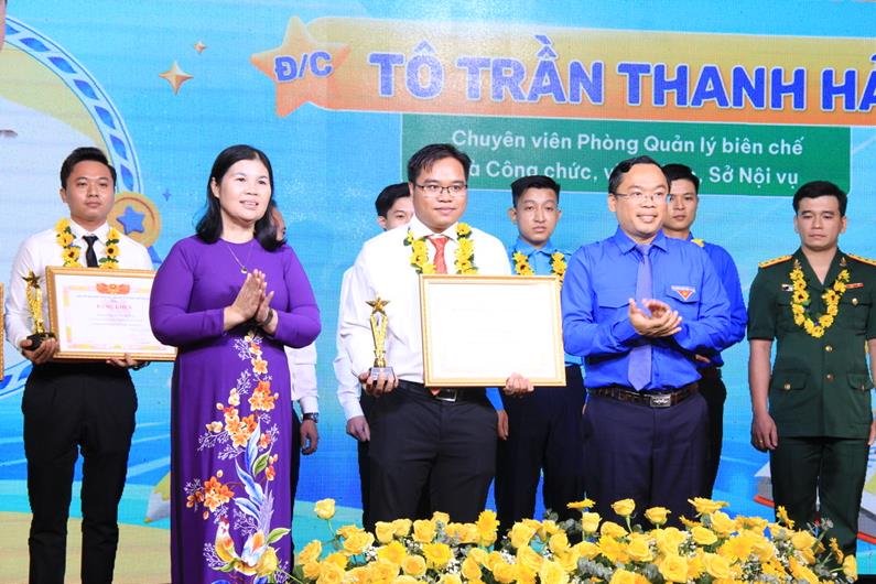 Các đại biểu trao bằng khen và biểu trương cho cá nhân đoạt giải thưởng Gương mặt trẻ tiêu biểu