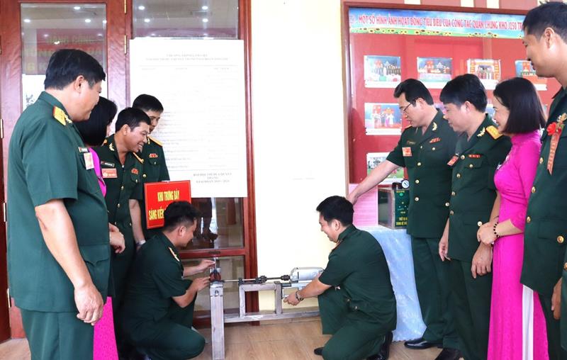 Thủ trưởng Cục Xe - Máy, lãnh đạo Kho J250 và quân nhân tham quan những mô hình học Bác trưng bày tại Đại hội Thi đua quyết thắng.