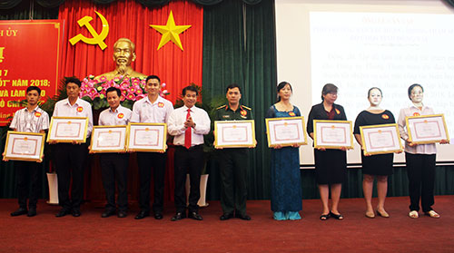 Trưởng ban Tuyên giáo Tỉnh ủy Thái Bảo trao bằng khen của UBND tỉnh cho các tấm gương “Người tốt, việc tốt”.