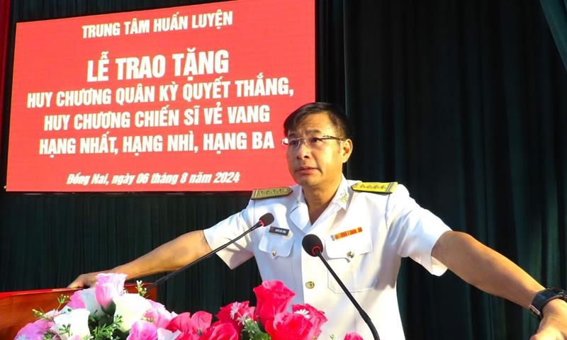 Thượng tá Trương Sỹ Nam, Phó chỉ huy trưởng Trung tâm Huấn luyện Vùng 2 khen thưởng các tập thể, cá nhân đợt thi đua cao điểm