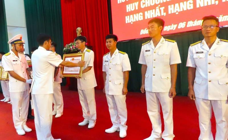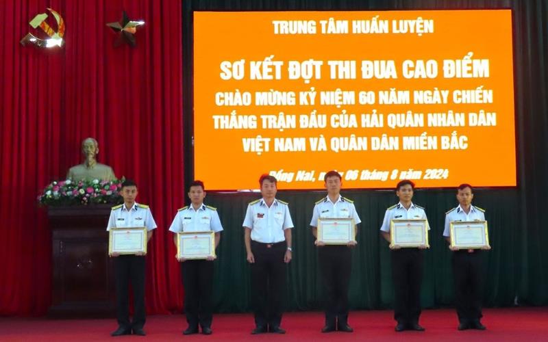 Đại tá Nguyễn Hữu Lương, Bí thư Đảng ủy, Chính ủy, Chủ tịch Hội đồng Thi đua khen thưởng Trung tâm chủ trì buổi lễ. Trong đợt thi đua cao điểm, Trung tâm có nhiều tập thể, cá nhân có thành tích xuất sắc được các cấp, các ngành khen thưởng. Trong đó, Trung tâm trao tặng cho 2 tập thể, 3 cá nhân có thành tích xuất sắc trong đợt chào mừng 60 năm Chiến thắng trận đầu của Hải quân nhân dân Việt Nam (2 và 5-8).