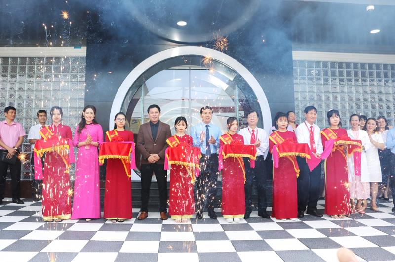 Các đại biểu cắt băng khánh thành phòng trưng bày của nhà trường.