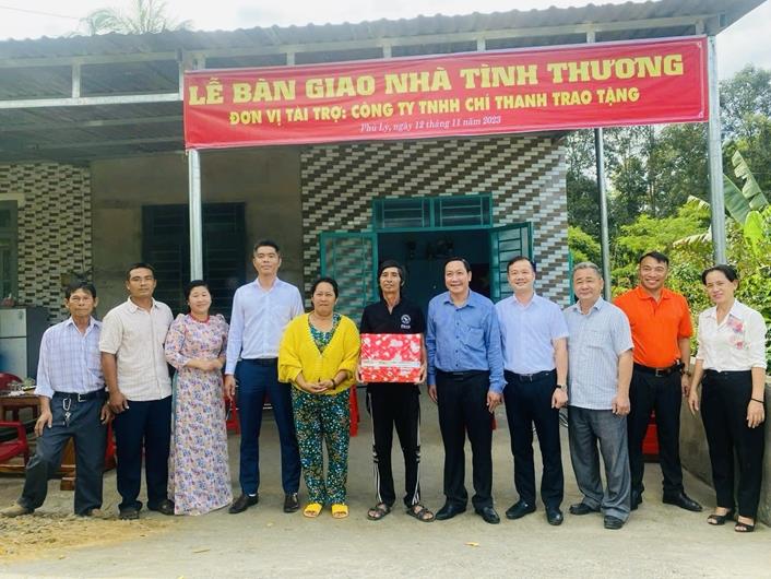 Anh Bùi Hữu Chí (thứ 4 từ trái sang) cùng lãnh đạo Đoàn đại biểu Quốc hội tỉnh trao tặng nhà tình thương cho người có hoàn cảnh khó khăn trong tỉnh