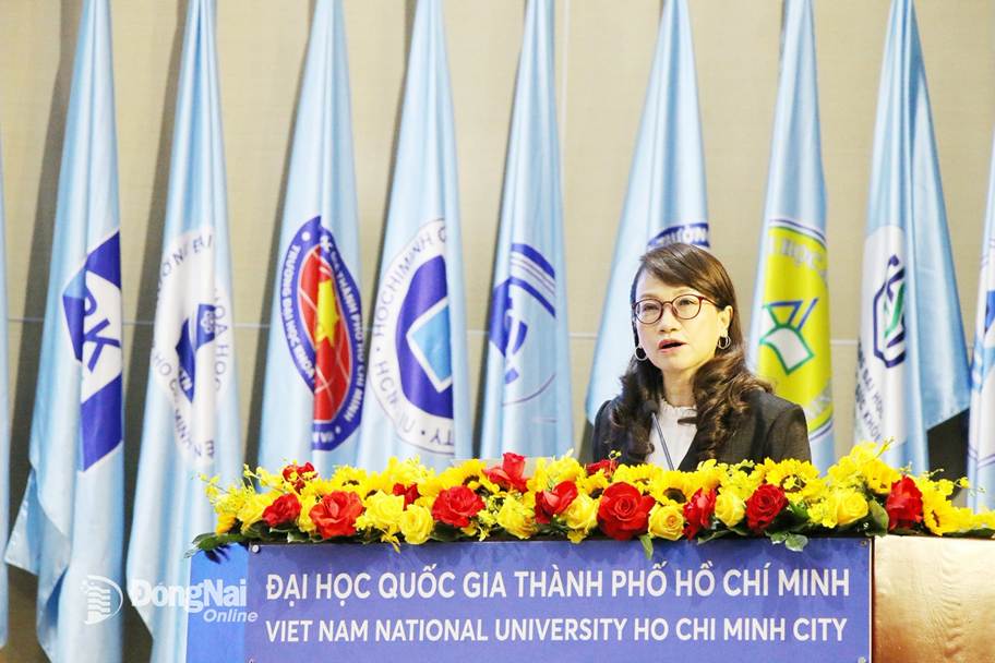GS-TS Nguyễn Thị Thanh Mai, Phó Giám đốc Đại học Quốc gia Thành phố Hồ Chí Minh phát biểu chào mừng hội thảo.