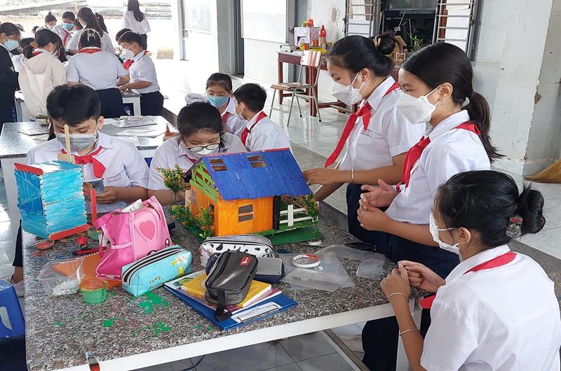 Học sinh Trường THCS Trần Hưng Đạo (TP.Biên Hòa) trong giờ thực hành mô hình sáng tạo trong học tập năm 2022