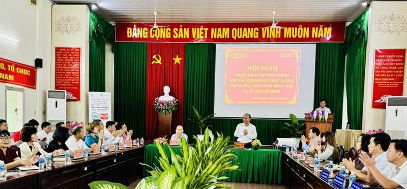 (CTT-Đồng Nai) - Chiều ngày 18-10, Sở Nông nghiệp và Phát triển nông thôn tỉnh phối hợp với Sở Công thương Thành phố Hồ Chí Minh (TP.HCM) tổ chức hội nghị triển khai Chương trình hợp tác kiếm soát chất lượng hàng hóa giữa 2 tỉnh, thành. Chương trình thu hút đông đảo đại diện các hệ thống siêu thị, chuỗi cửa hàng kinh doanh thực phẩm, doanh nghiệp, hợp tác xã, cơ sở sản xuất, kinh doanh của 2 địa phương tham gia.