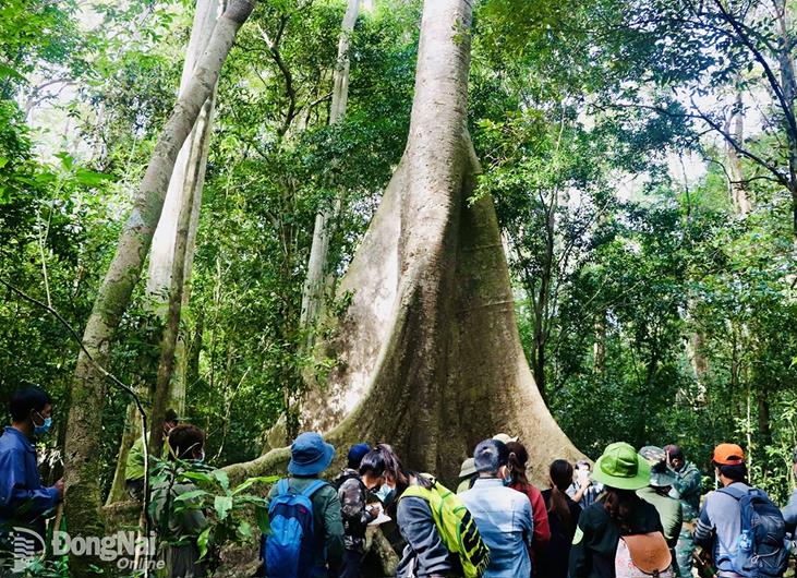 Du khách tìm hiểu các loài gỗ quý tại Vườn quốc gia Cát Tiên. Ảnh: B.Nguyên