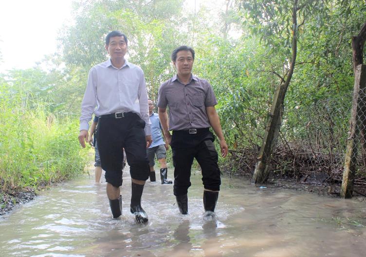 Phó Chủ tịch UBND tỉnh Đồng Nai Võ Văn Phi khảo sát khu vực sản xuất nông nghiệp bị ngập ở ấp Đất Mới, xã Phú Hội, huyện Nhơn Trạch.