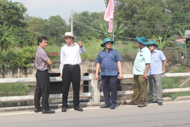 Phó Chủ tịch UBND tỉnh Võ Văn Phi khảo sát đoạn đầu tuyến cống Lò Rèn tại xã Long Thọ, huyện Long Thành.
