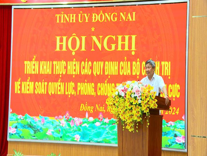 Phát biểu chỉ đạo tại hội nghị, Phó Bí thư thường trực Tỉnh ủy đề nghị, sau khi được quán triệt 4 quy định của Bộ Chính trị về kiểm soát quyền lực, phòng chống tham nhũng tiêu cực, cán bộ lãnh đạo chủ chốt toàn tỉnh cần nhận thức rõ mình vừa là chủ thể, vừa là đối tượng thực hiện các quy định này. Mỗi cán bộ lãnh đạo nghiên cứu tổ chức thực hiện tốt các quy định này thì hình ảnh Đảng bộ Đồng Nai trong thời gian tới sáng hơn nhiều.