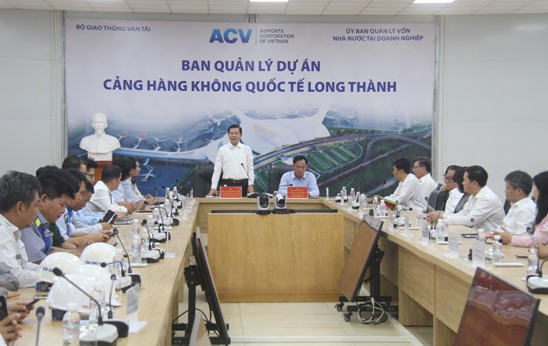 Đại diện chủ đầu tư (ACV) chia sẻ với lãnh đạo tỉnh tiến độ triển khai các gói thầu dự án Sân bay Long Thành (giai đoạn 1).