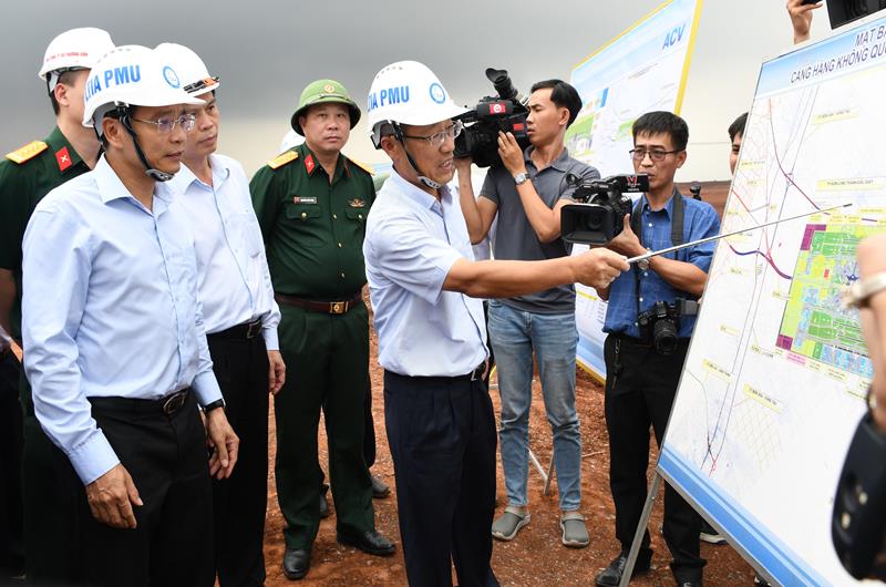 Bộ trưởng Bộ GTVT Nguyễn Văn Thắng kiểm tra tiến độ thi công tại dự án sân bay Long Thành