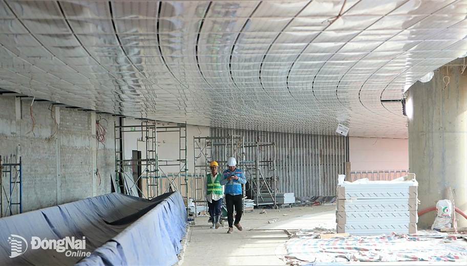 Công trình nhà ga hành khách, “trái tim” của Sân bay Long Thành đang bước vào giai đoạn thi công hoàn thiện. Nhiều phần trần nhà ga đã hoàn thành thi công. Ảnh: Phạm Tùng