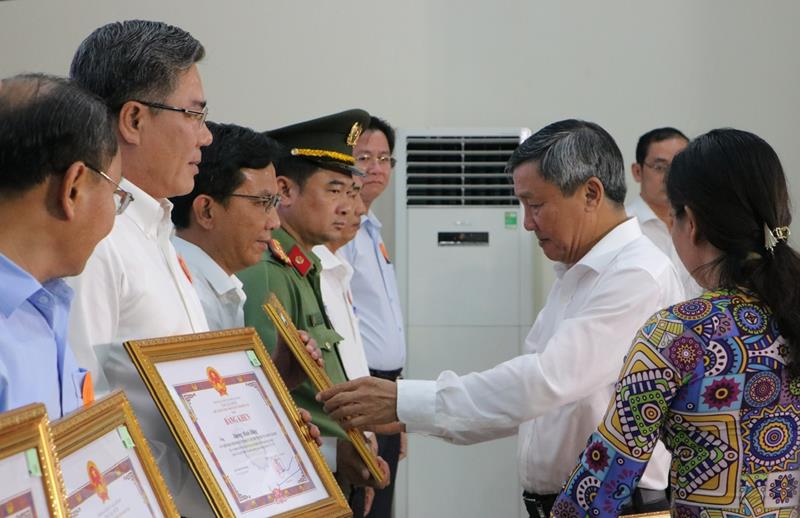 Quyền Chủ tịch UBND tỉnh Võ Tấn Đức trao bằng khen của UBND tỉnh cho các cá nhân, tập thể có thành tích xuất sắc trong công tác giải phóng mặt bằng dự án Sân bay Long Thành