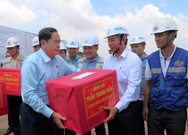 Chủ tịch Quốc hội Trần Thanh Mẫn tặng quà động viên các đơn vị thi công Dự án Sân bay Long Thành