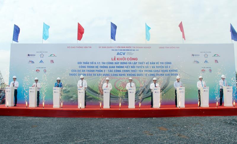 (CTT-Đồng Nai) - Ngày 14-7, tại xã Long Phước, H.Long Thành, Tổng Công ty Cảng hàng không Việt Nam (ACV) tổ chức khởi công xây dựng công trình hệ thống giao thông kết nối tuyến số 1 và tuyến số 2 của Dự án thành phần 3 - các công trình thiết yếu trong cảng hàng không thuộc Dự án đầu tư xây dựng Cảng hàng không Quốc tế Long Thành (sân bay Long Thành) giai đoạn 1. Phó Chủ tịch UBND tỉnh Nguyễn Thị Hoàng đã đến dự.