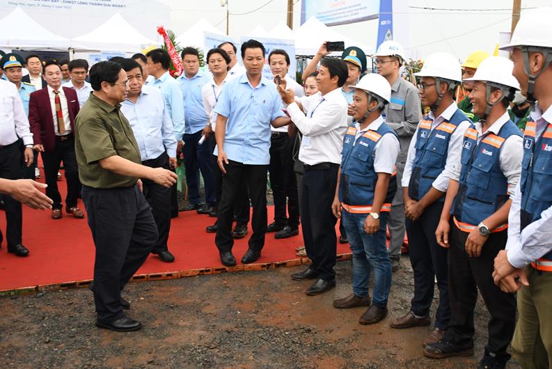 Thủ tướng Chính phủ Phạm Minh Chính thăm và động viên công nhân tại công trường nhân dịp khởi công dự án