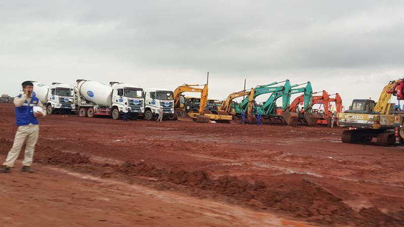 Các máy móc tiết bị được tập kết tại dự án xây dựng sân bay Long Thành để thi công công trình