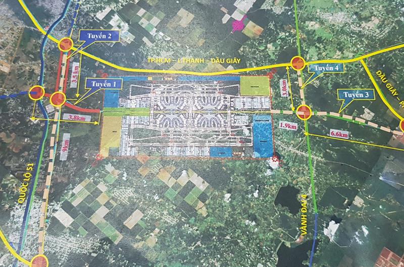Theo quy hoạch, tuyến đường số 1 có chiều dài 3,8km sẽ có điểm đầu tư cổng phía Tây Sân bay Long Thành kết nối với đường cao tốc Biên Hòa - Vũng Tàu, quốc lộ 51 và điểm cuối khớp nối với đường tỉnh 25C. Tuyến số 2 có chiều dài 3,5km có điểm đầu giao với tuyến số 1, kéo dài song song với đường cao tốc Biên Hòa - Vũng Tàu và điểm cuối giao với đường cao tốc TP.HCM - Long Thành - Dầu Giây